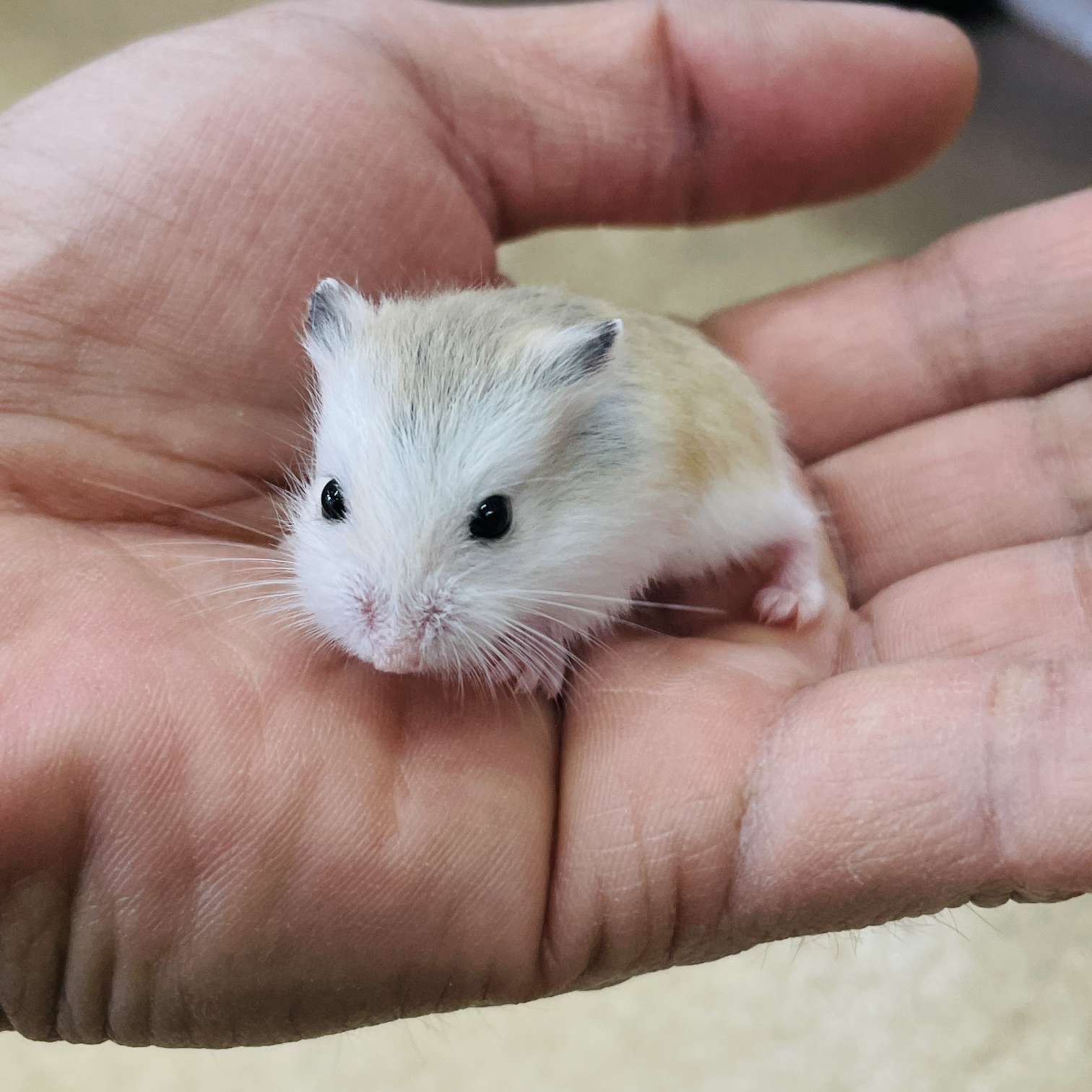 当店ブリード、可愛いロボロフスキーハムスター ホワイトフェイス hetブルー&パイド(オス/メス各1匹) この血統のホワイトフェイスは劣性遺伝タイプです カラーにより販売価格が若干異なりますm(_ _)m 販売済みです