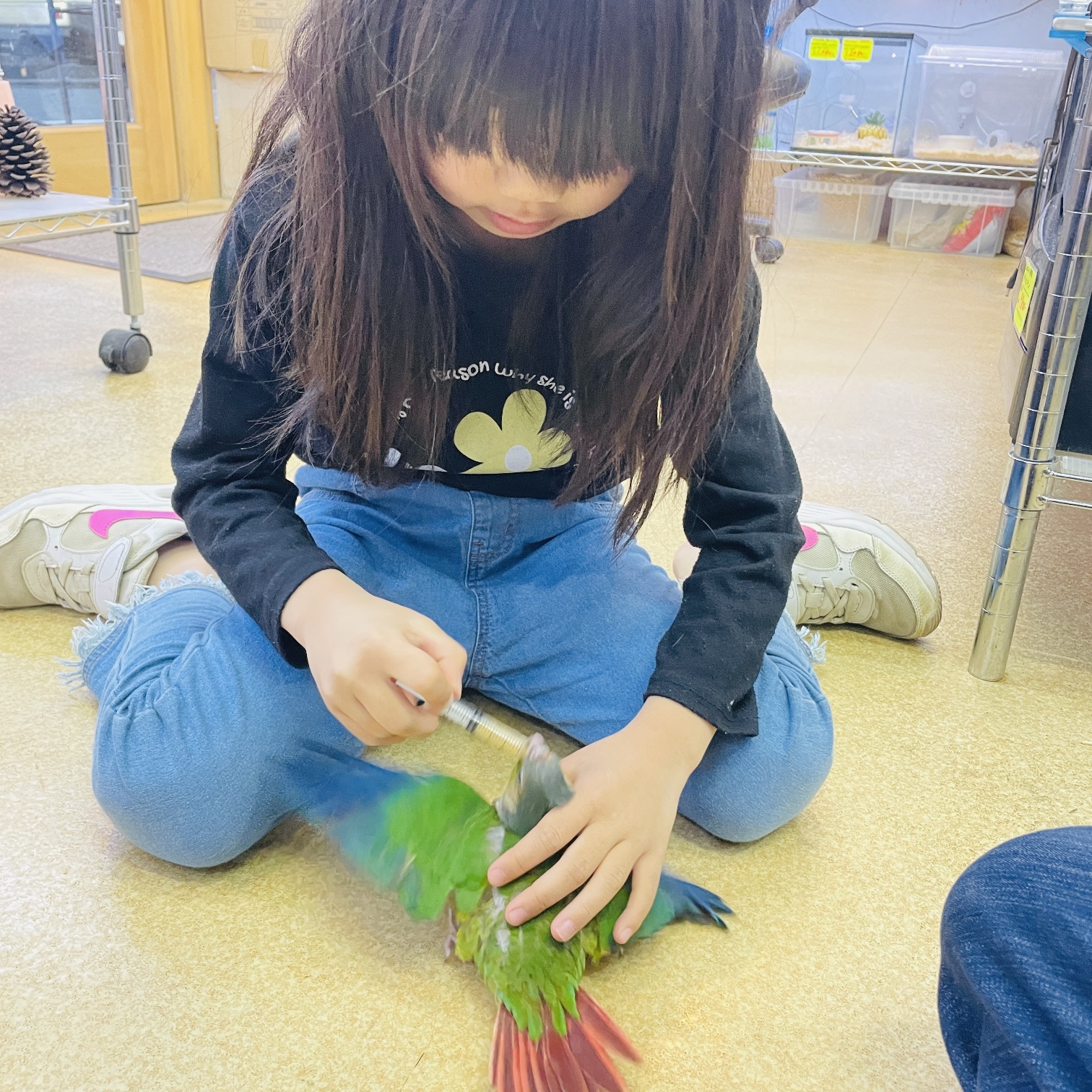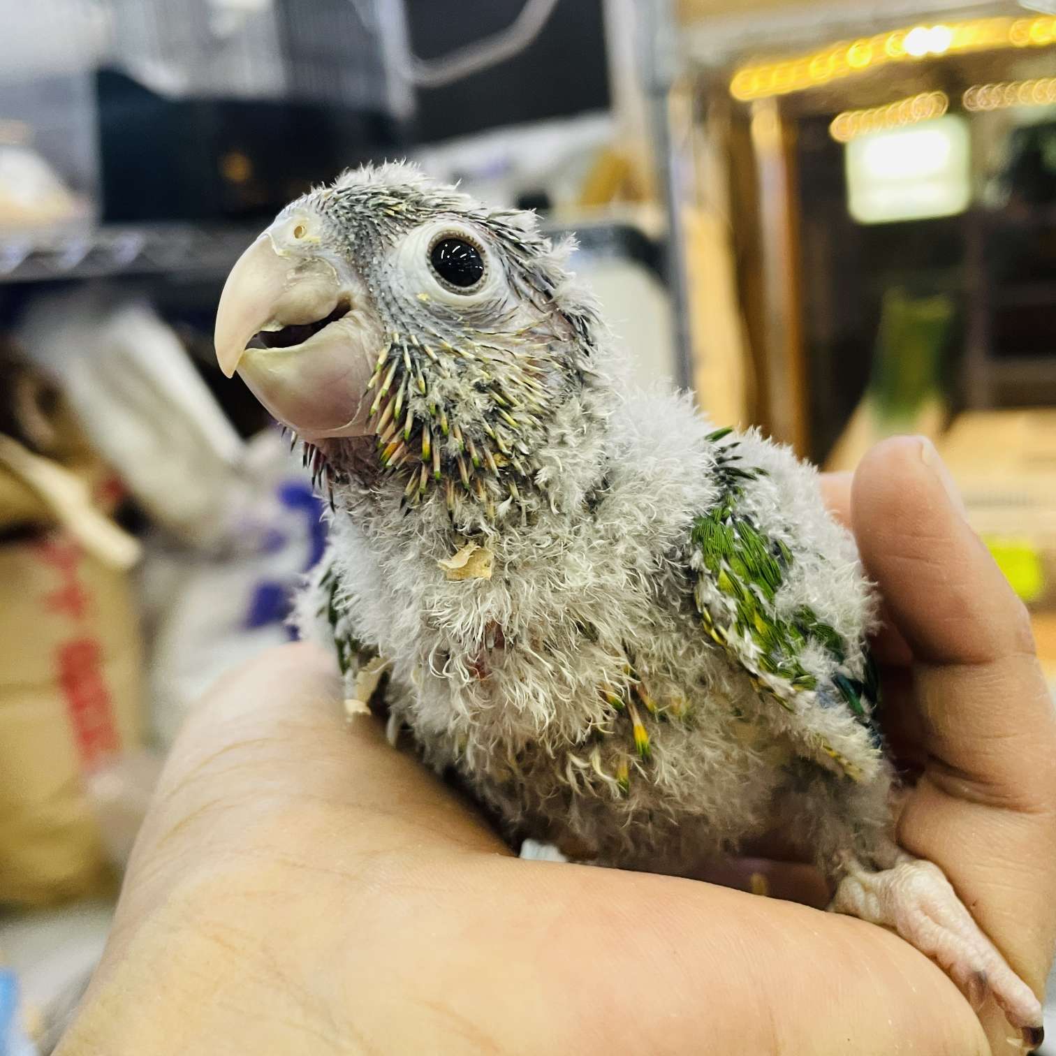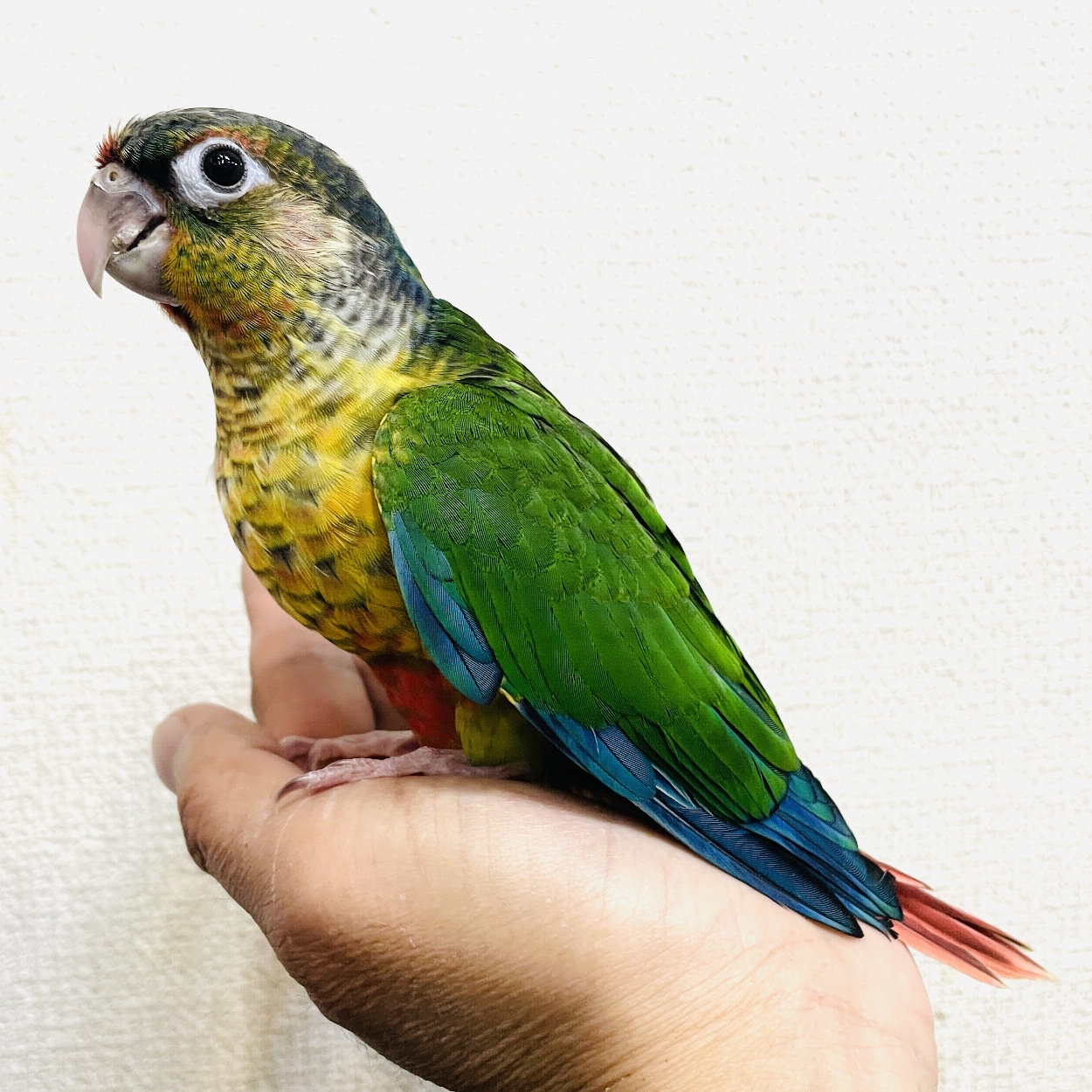 めっちゃ可愛い雛が店頭デビューしました♪ 噛み癖を矯正して噛まなくなりました^^ 手や肩に乗ってボソボソ喋ってはキャハハハと1人で大爆笑する癖が強い面白い子に育ちました(≧∀≦) お迎えいただきました♪
